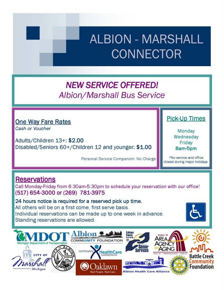 There is also a bus within Marshall called Dial-a-Ride. The phone number is on the van, as long as people know the area code is 269.